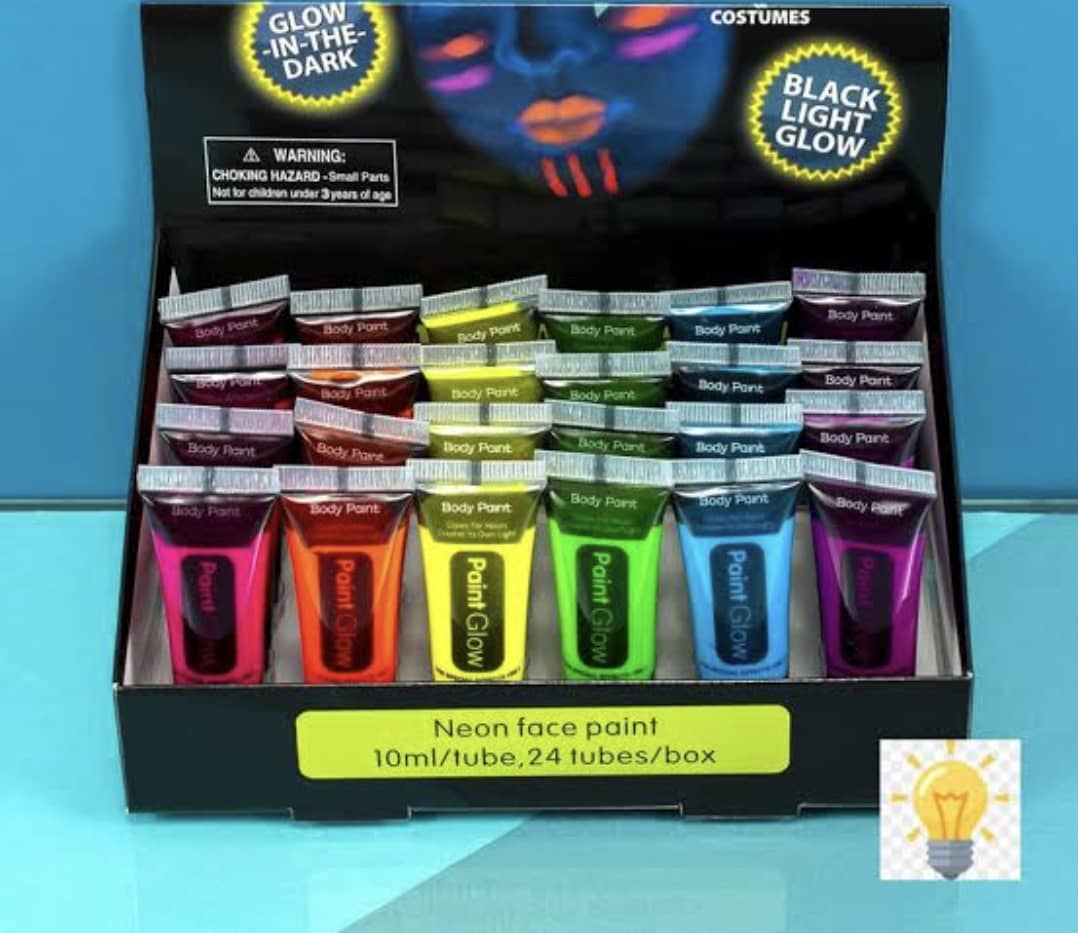 10 vibrant colors: Neon Pink,Neon Red,Neon Orange,Neon Yellow,Neon Light Yellow,Neon Green,Neon Turquoise,Neon Blue,Neon purple,Neon White.Funny glow magic neon paints which can meet your needs on various occasions.Imagine the surprise and delight on your child’s face when they see their artwork, room, or accessories glow bright neon in the dark after exposure to UV light.