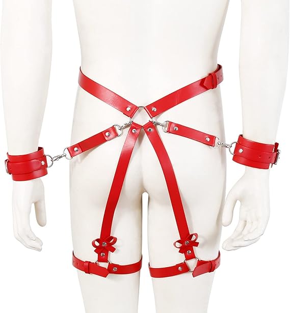 💓Handcuffs Sex Thigh Butt Strap💓Product include 2 handcuffs and PU connecting belt.Adjustable design fits most people.Handcuffs are detachable so that it can meet different needs.